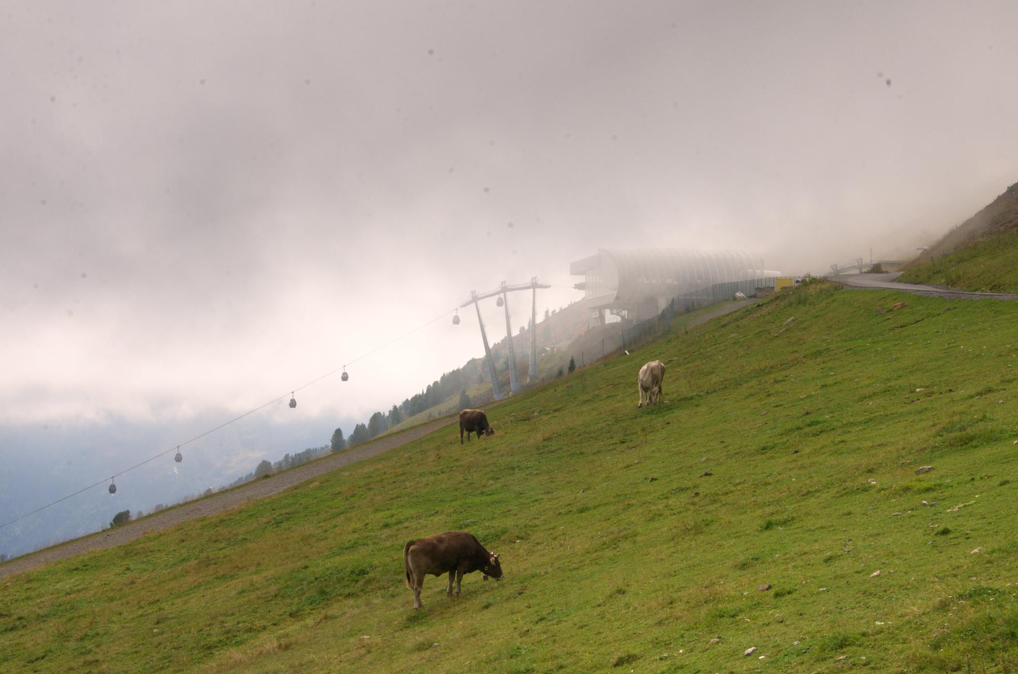 Heute ist die "laute Seite" Söldens dran. Sie ist laut, weil im Sommer hier Mountainbiker für Angst, Schrecken und Terror unter den Wanderern sorgen. Wurde man am Gardasee nur von Rentnern auf E-Bikes über den Haufen gefahren, wartet hier ein ganz neuer Al(b/p)traum von nie gekannten Ausmaßen.